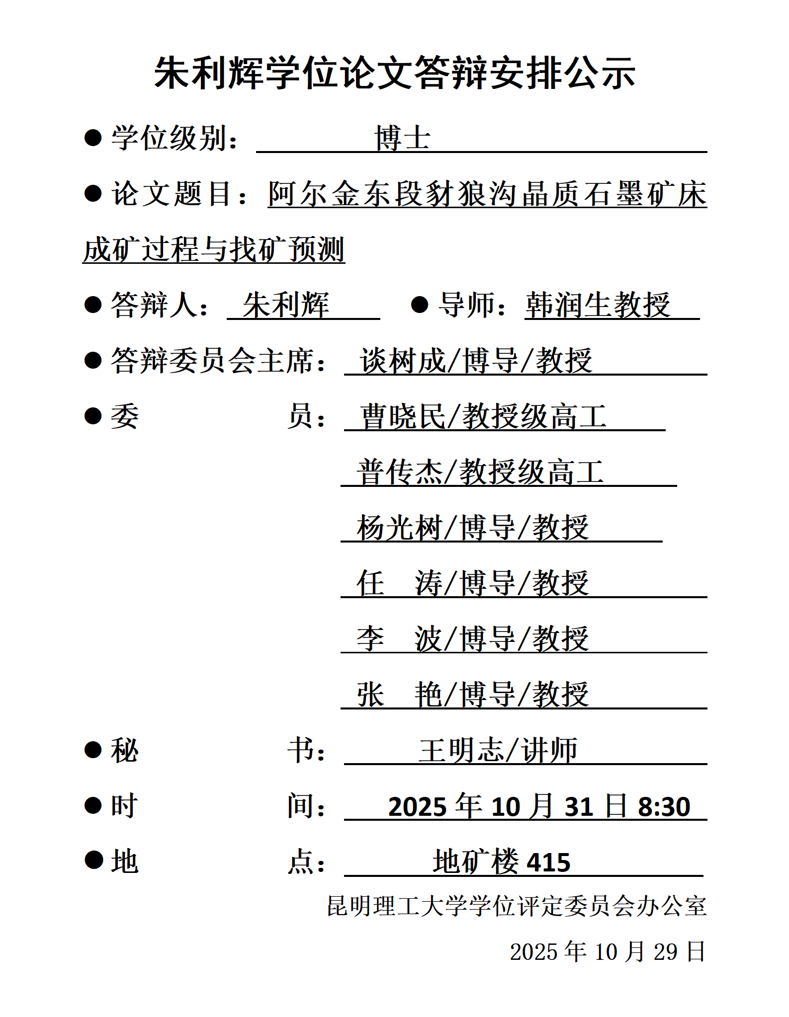 朱利辉学位论文答辩安排公示