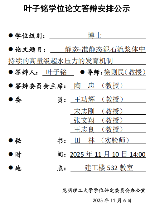 叶子铭学位论文答辩安排公示
