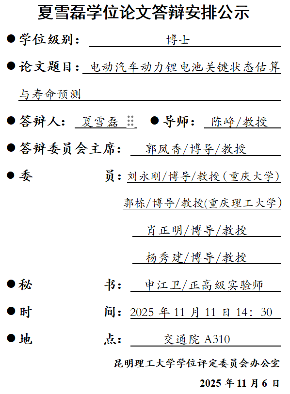 夏雪磊学位论文答辩安排公示