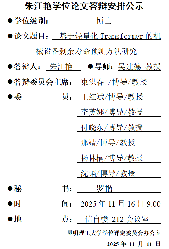 朱江艳学位论文答辩安排公示