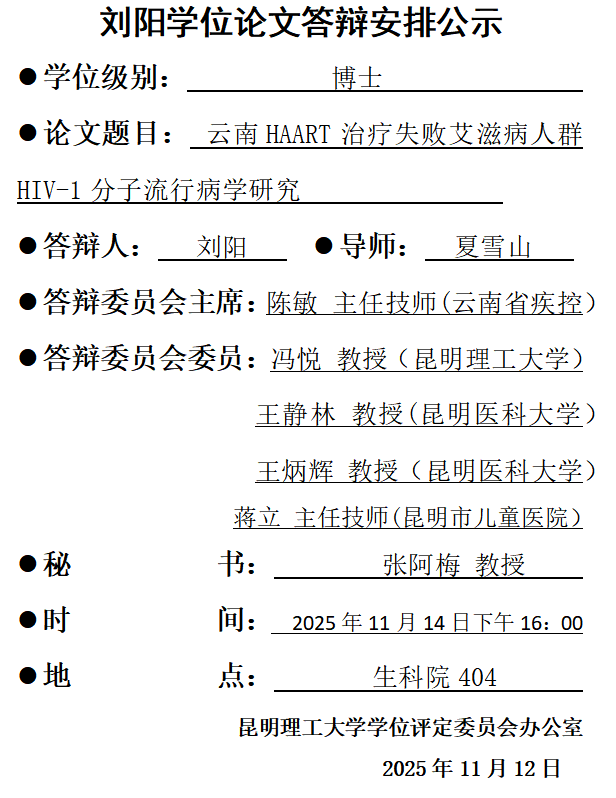刘阳学位论文答辩安排公示