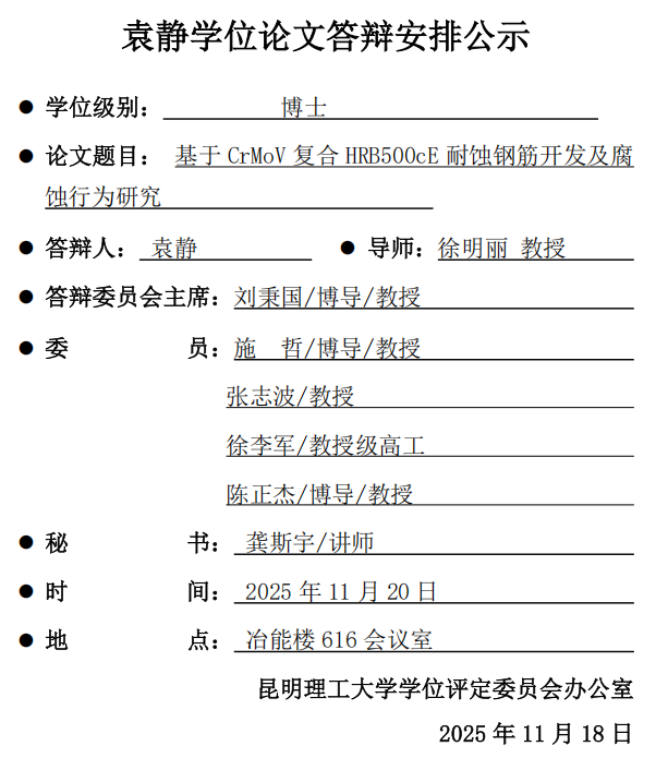 袁静学位论文答辩安排公示