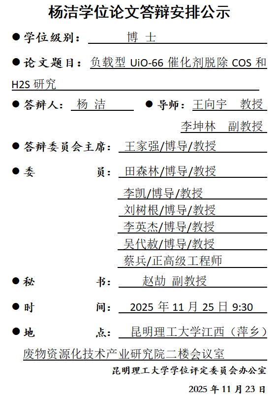 杨洁学位论文答辩安排公示