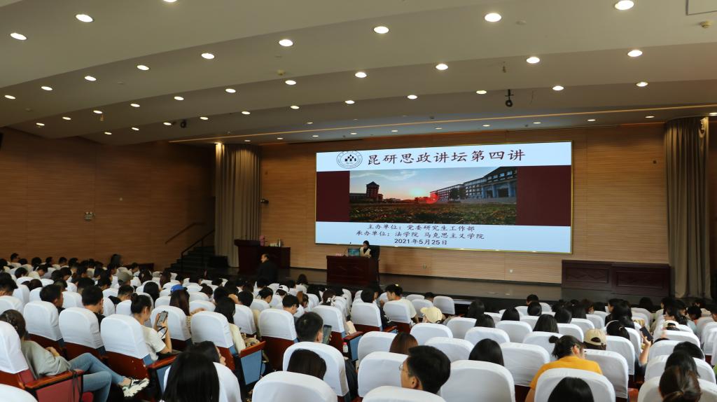 5月25日下午,第四期“昆研思政讲坛”在呈贡校区图书馆蓝色报告厅举行。活动邀请校党委常委、副校长周峰越教授担任主讲嘉宾,为师生们作题为《当代中国大学美育教育》的专题讲座。本期讲坛由党委研工部主办,法学院和马克思主义学院共同承办,来自各研究生培养单位、博硕宣讲团、研究生菁英训练营的270余名师生代表参加了此次讲座。